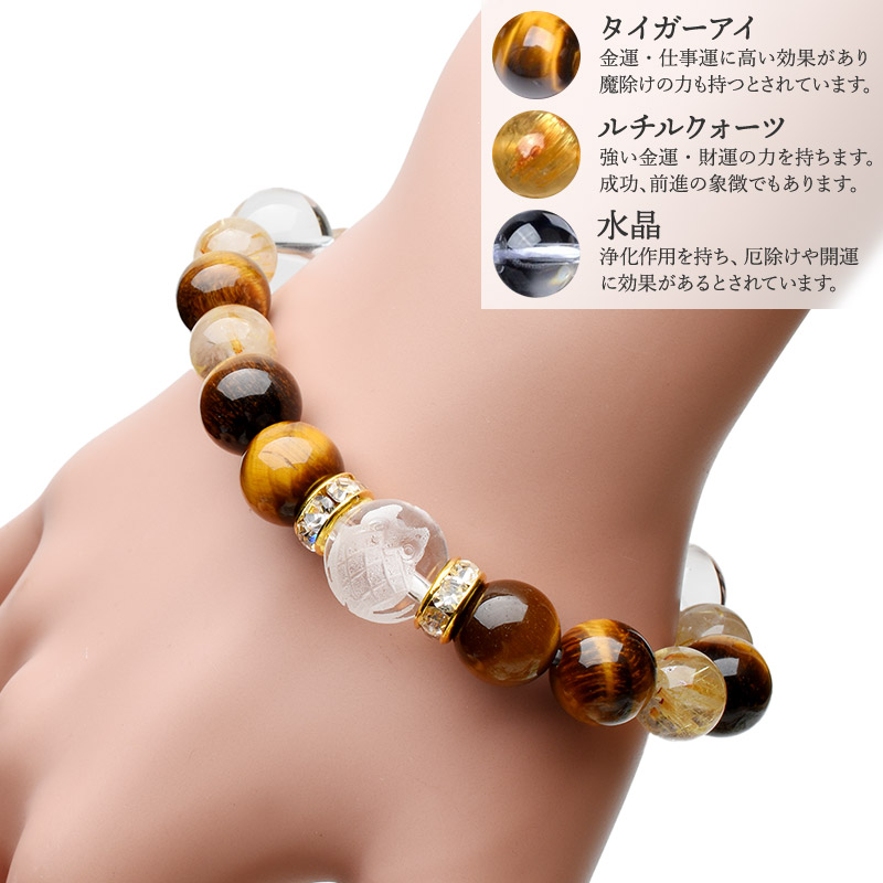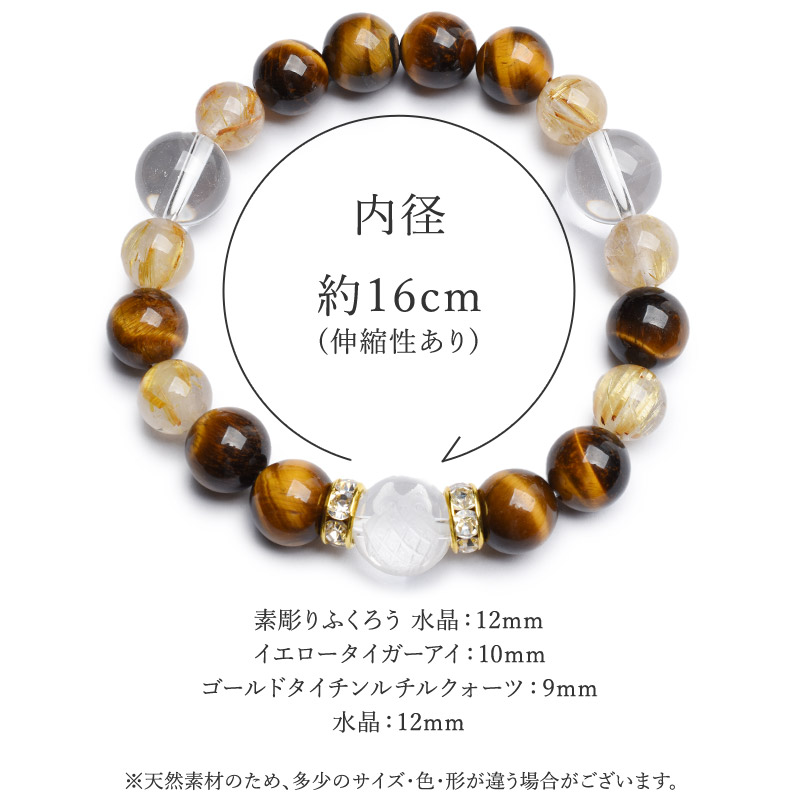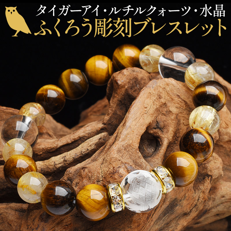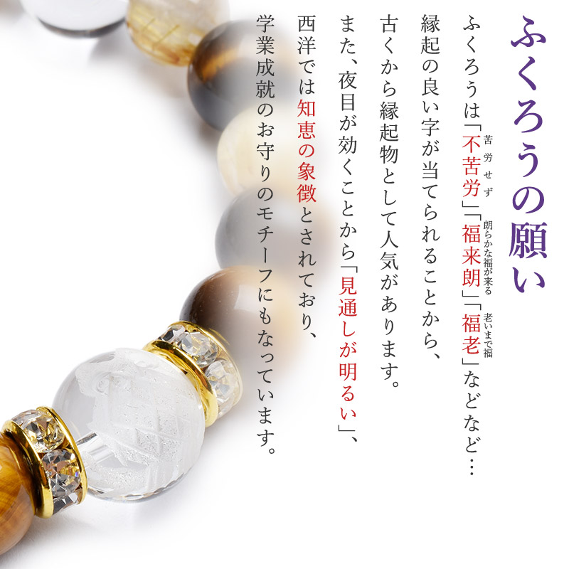 開運金運ふくろう(不苦労)水晶素彫り×タイチンルチル 当店オリジナルブレス 天然石パワーストーン_A764