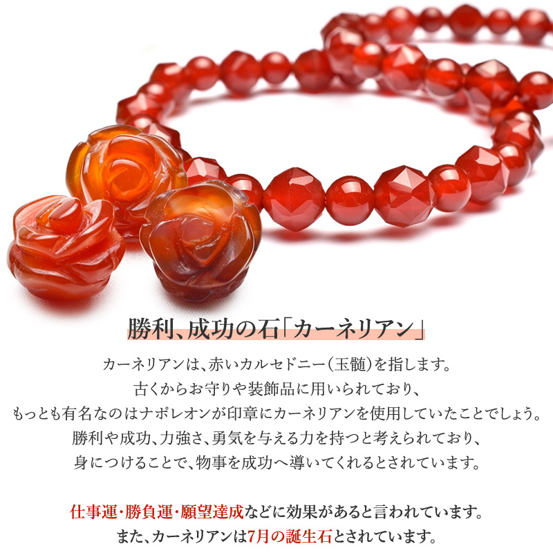 特徴・意味カーネリアンとローズクォーツを使用し、より恋愛運を高め、女性らしく可愛くお使い頂ける様にと制作致しました。