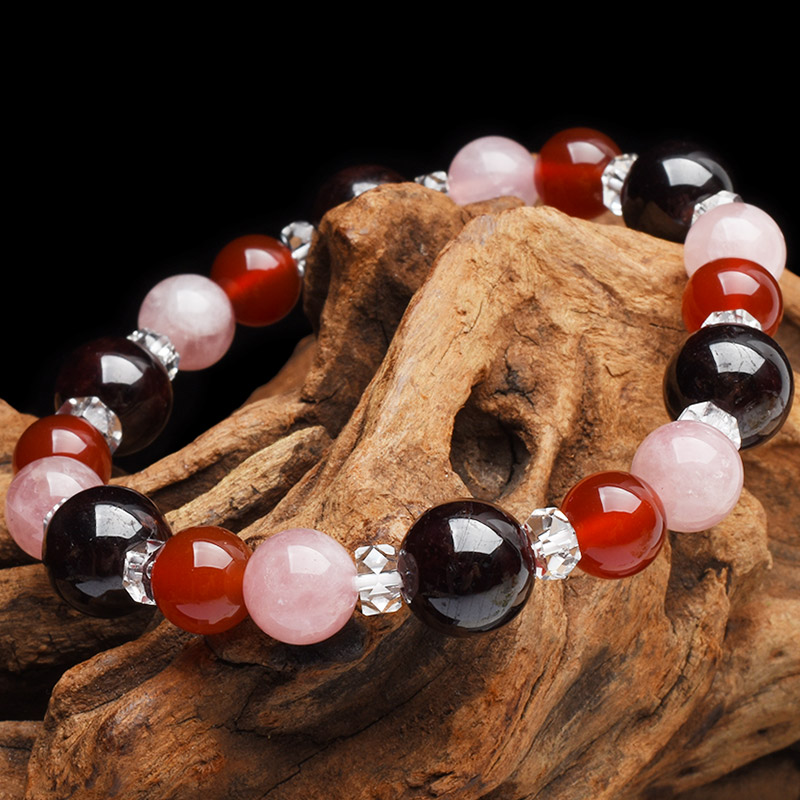 【勝利の石柘榴石】ガーネット×ローズクォーツ「1月誕生石」 当店オリジナルブレス_A1102