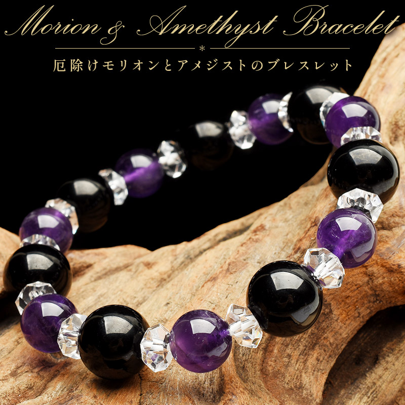 モリオンとアメジストは相性が良く、恋愛運の向上やお仕事での安全のお守り、また厄除けのお守りにもピッタリの組み合わせです。