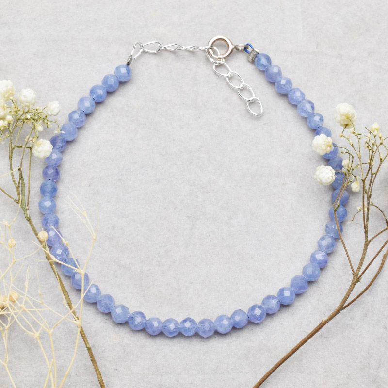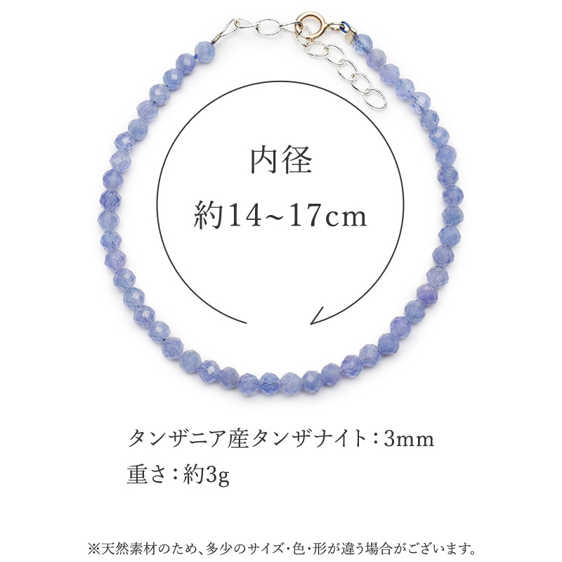 Silver925◇すみれ色の宝石 タンザナイト 3mm ボールカット アジャスター付き ブレスレット 1個売り _BG4951-3