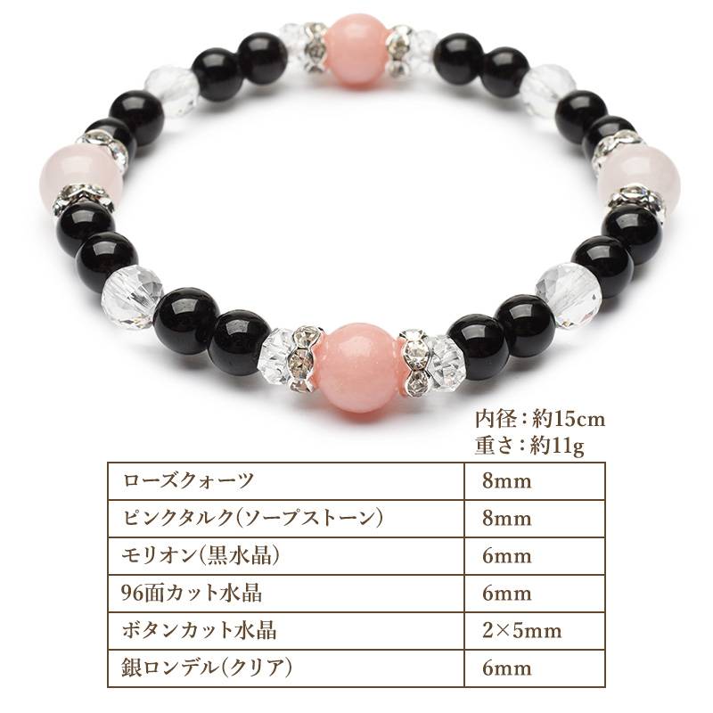 【厄除けお守り】 モリオン 黒水晶 ローズクォーツ ピンクタルク 水晶 厄除け 魔除け 浄化 運気向上 開運 お守り プレゼント ブレスレット 当店オリジナル _A1280