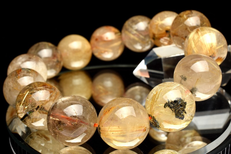 材質ヘマタイトインタイチンルチルクォーツ 16-17mm 産地:ブラジル