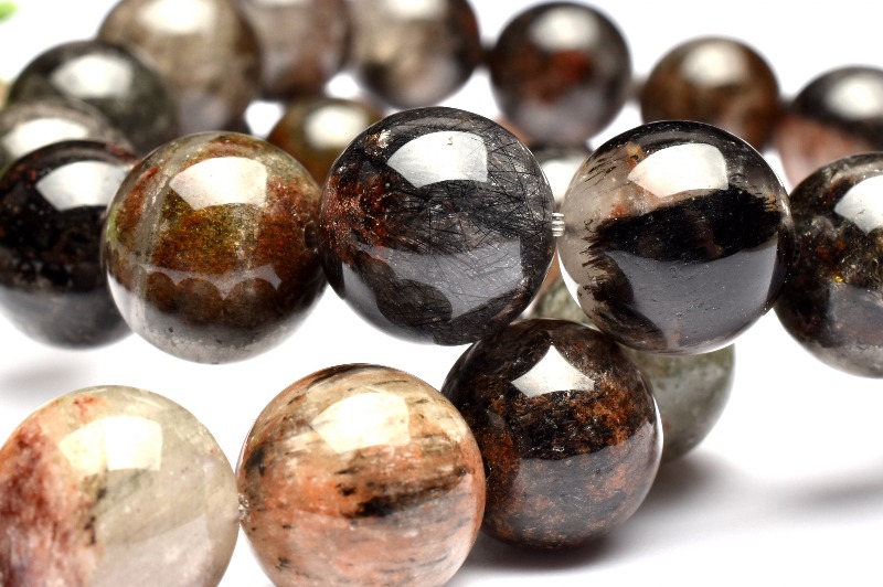 材質ブラックトルマリンインガーデンクォーツ 9mm 産地:ブラジル