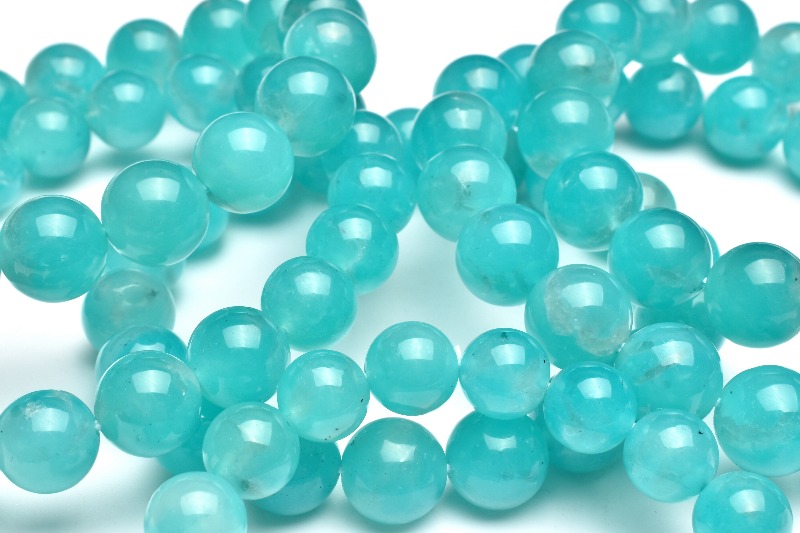 心を和ませてくれるような美しくやわらかな青緑色は、形成成分に含まれる鉛イオンによるものです。表面はガラス光沢か真珠光沢を放っており、四角柱状で産出することが一般的です。ほとんどが不透明で、ヒスイにも似た固体があり、それらはアマゾンジェードと呼ばれています。ヒスイの代用品として使われたこともあるようです。