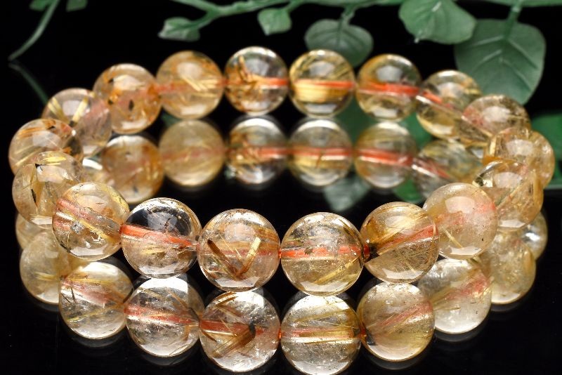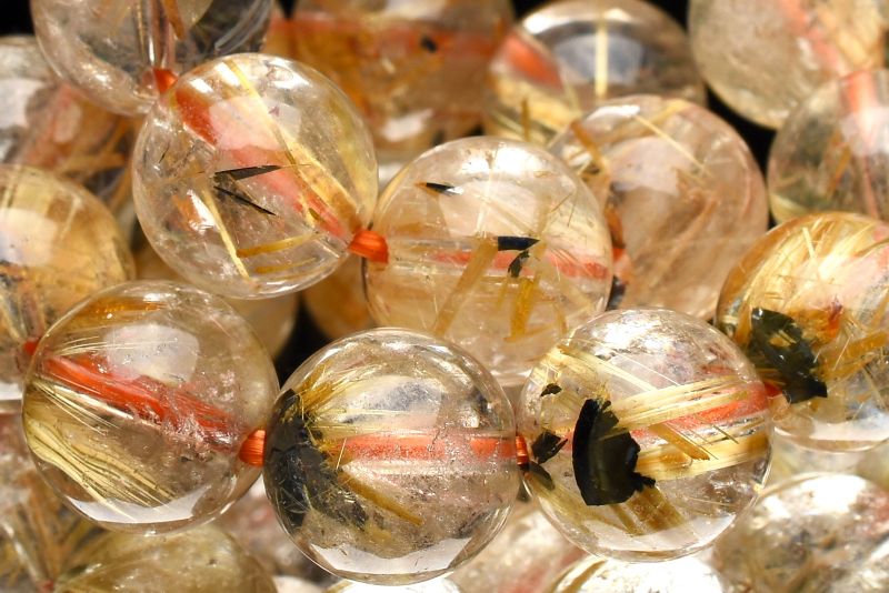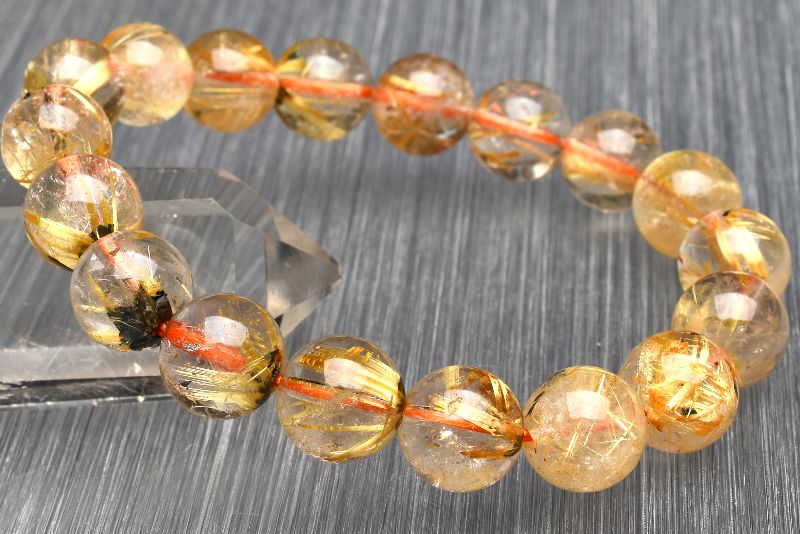 材質ヘマタイトインタイチンルチルクォーツ 10.5mm 産地:ブラジル