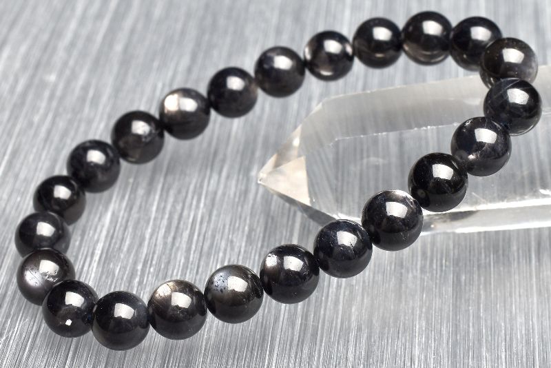 【1点物】金属光沢のシラー スターアイオライト 8mm ブレスレット _U4361