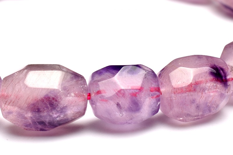 パワーストーンの定番アメジストに、細かなゲーサイトやレピドクロサイトが入っているアメジストスーパーセブンです。