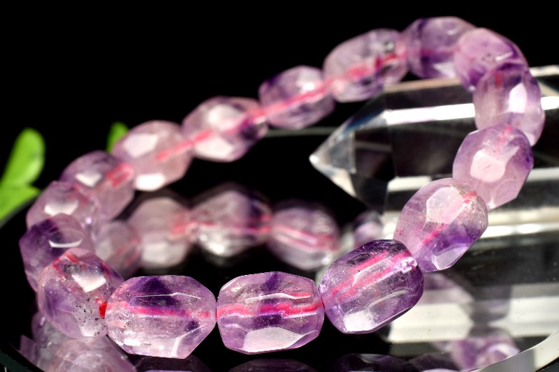 パワーストーンの定番アメジストに、細かなゲーサイトやレピドクロサイトが入っているアメジストスーパーセブンです。