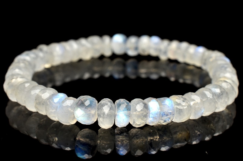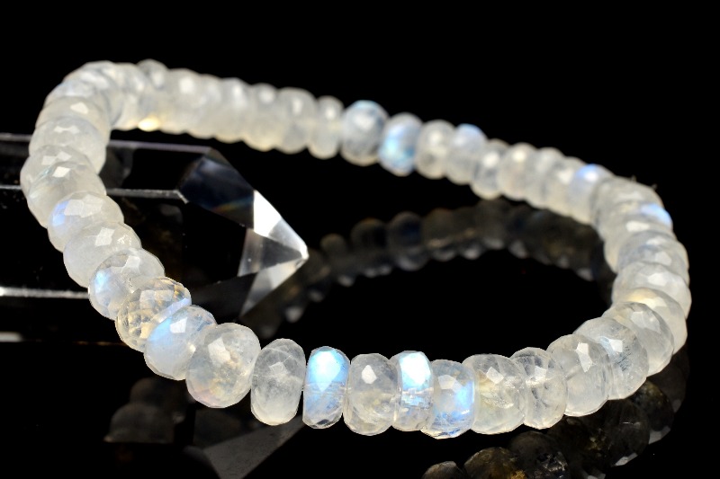【1点物】キラキラ◇インド産 ブルームーンストーン 3-4x7mm ボタンカット ブレスレット _M4914