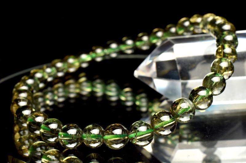 角度を変えると特有の多色性が見られ、グリーン〜イエローがかったグリーンへと変わる様はとても美しいです。