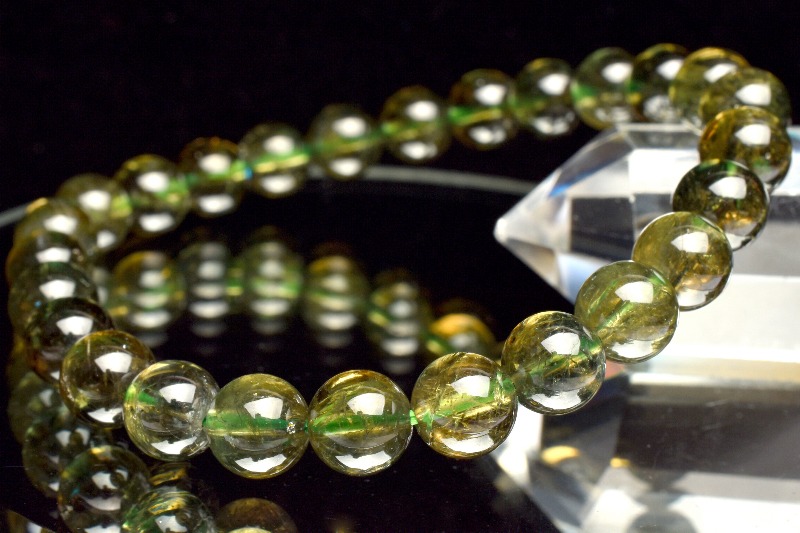 角度を変えると特有の多色性が見られ、グリーン〜イエローがかったグリーンへと変わる様はとても美しいです。