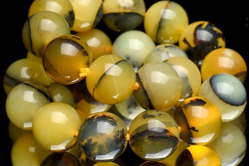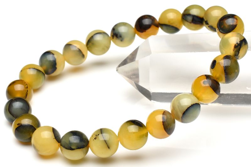 【1点物】デンドリティック イエローオパール 8.5mm ブレスレット _U4407
