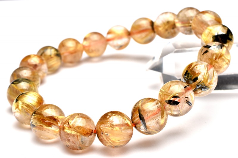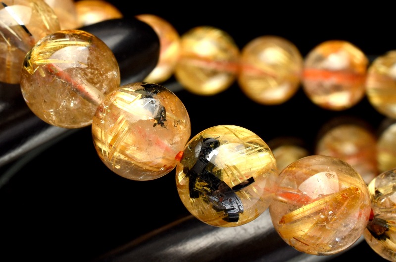 材質ヘマタイトインタイチンルチルクォーツ 10-10.5mm 産地:ブラジル