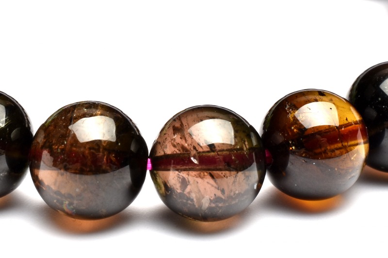 よく見るとウォーターメロントルマリンのようにバイカラーになっている珠もございます。