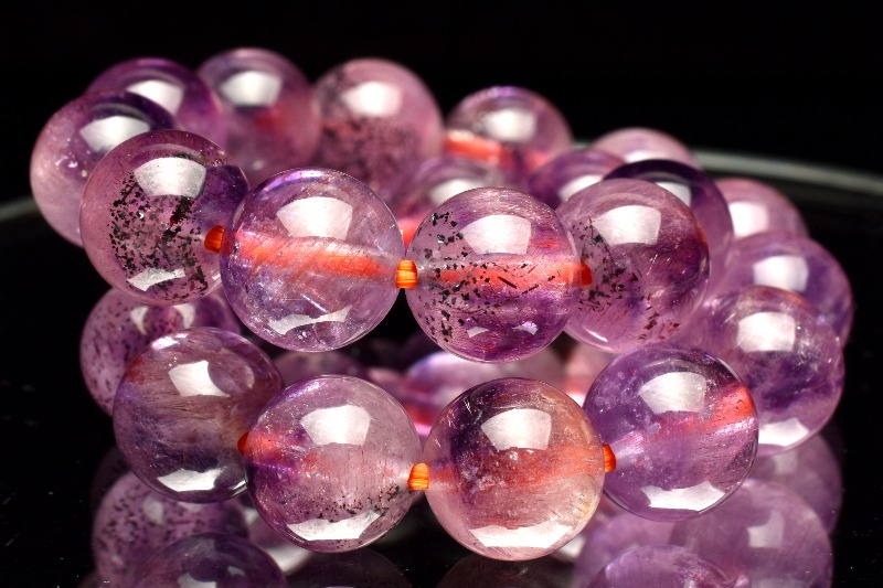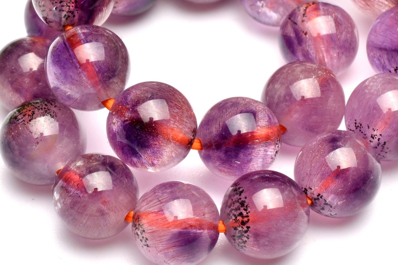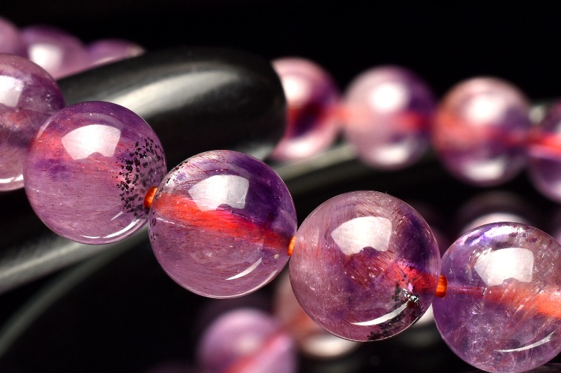 材質ピンクスーパーセブンアメジスト 8mm 産地:ブラジル