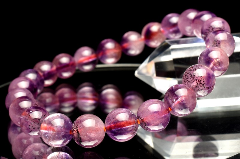 パワーストーンの定番アメジストに、細かなゲーサイトやレピドクロサイトが入っているアメジストスーパーセブンです。