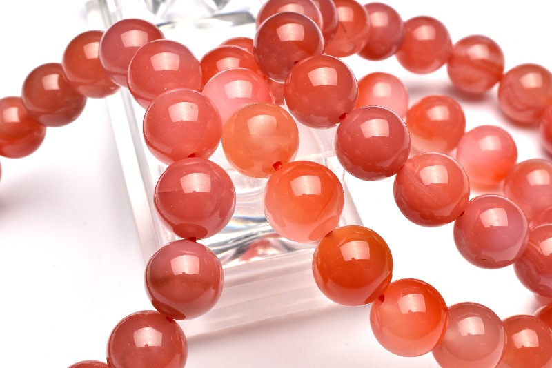 材質ピンクアゲート(桃色瑪瑙) 10.5mm 産地:中国・四川省