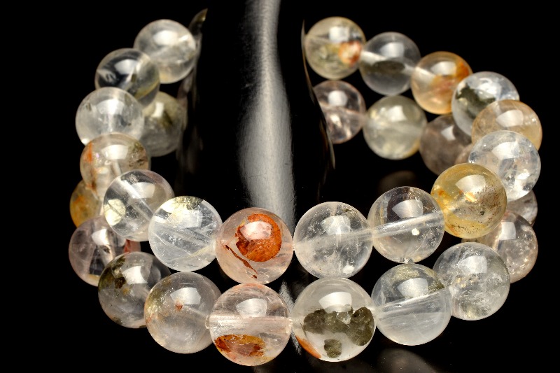マダガスカル産 ライモナイト&マーカサイトインクォーツ 13.5mm ブレスレット 1個売り _BG5403-135