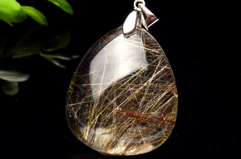 【1点物】Silver925◇繊細銀針 シルバールチルクォーツ 28x24mm ドロップ ペンダントトップ _PC388