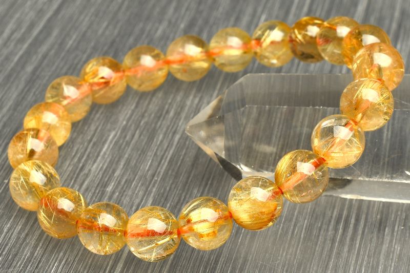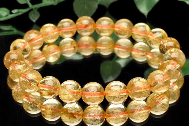 【1点物】AA+☆黄金の輝き ゴールドタイチンルチルクォーツ 9mm ブレスレット _U4604