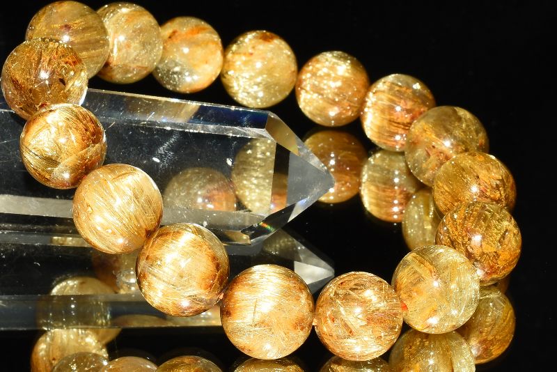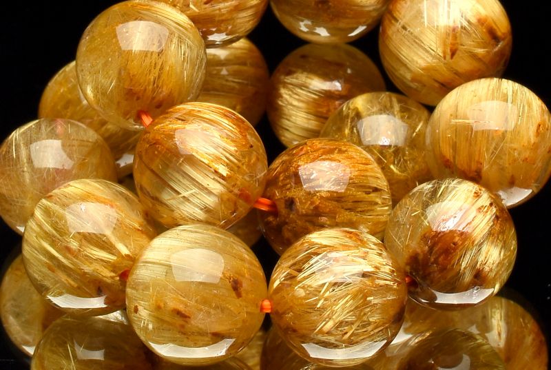 材質ゴールドタイチンルチルクォーツ 13mm 産地:ブラジル
