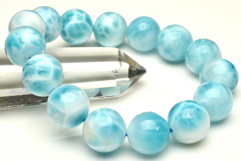 【1点物】AAA☆美しい水面模様 大珠 ラリマー 14.5mm ブレスレット _U4620