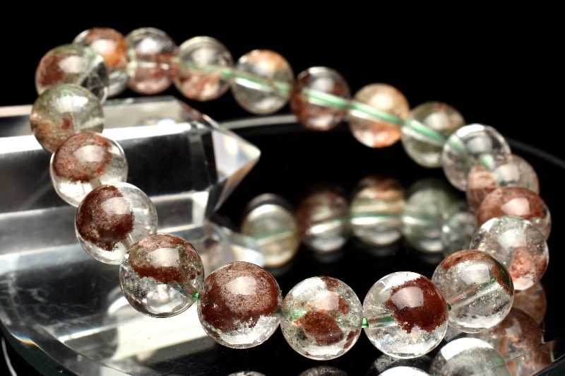 【1点物】クリア レッドガーデンクォーツ 9.5mm ブレスレット _M5642