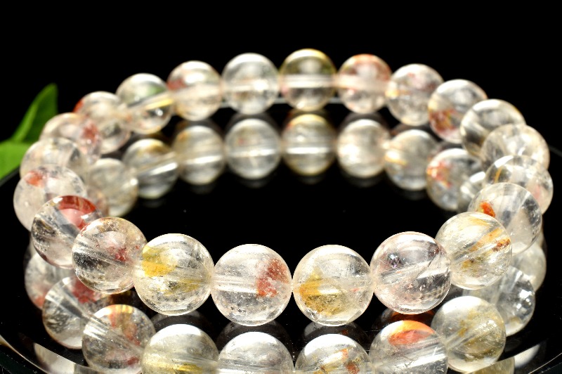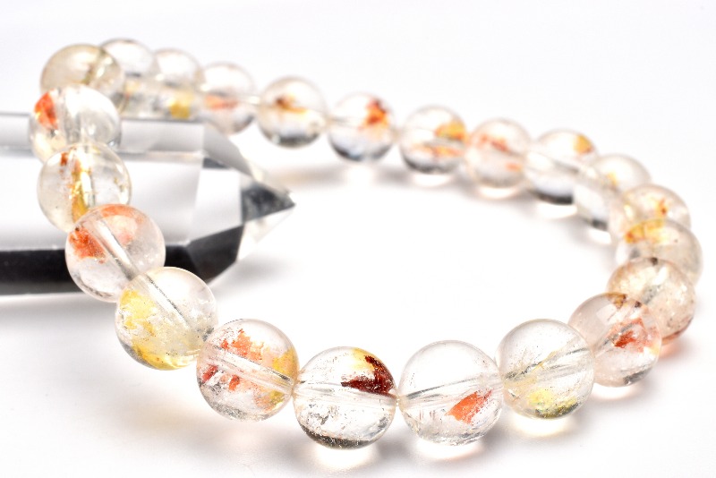 【1点物】高発色◇クリア オーロラクォーツ(ライモナイトインクォーツ) 9mm ブレスレット _M5724