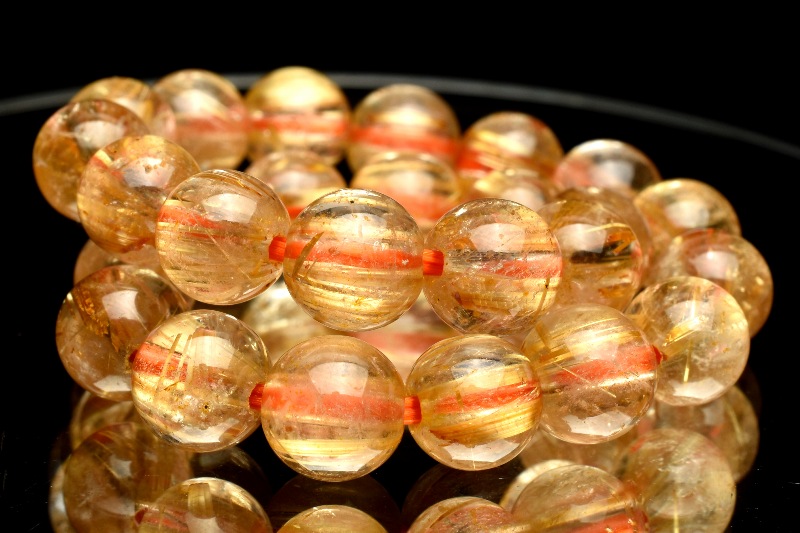 材質ゴールドタイチンルチルクォーツ 7mm 産地:ブラジル