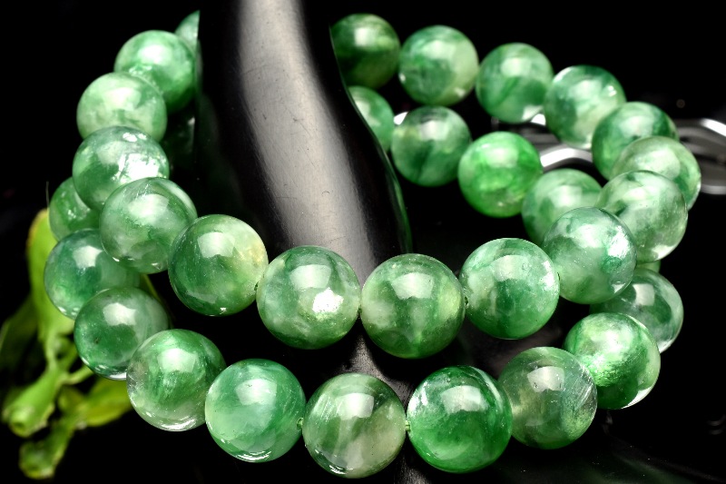 高発色◇フックサイト入り グリーンマイカ 7.5mm ブレスレット 1個売り _BG5417-75