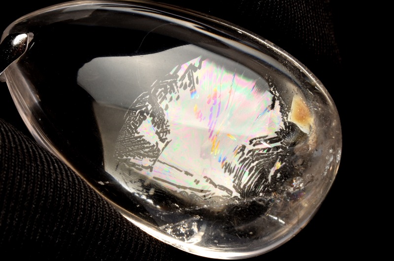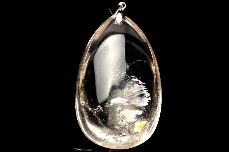 その名の通り、透明のクリスタル(水晶)の内部が虹色に輝く、たいへん美しい石です。