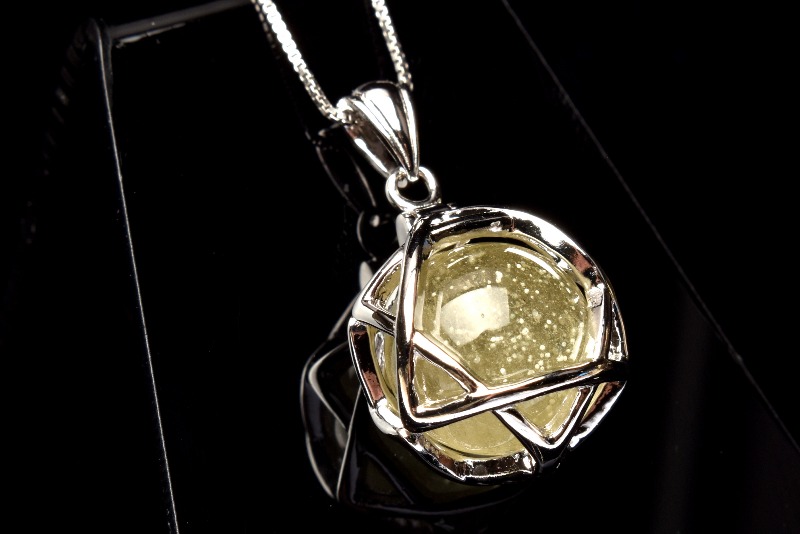 【1点物】Silver925◇AAA宇宙の神秘 リビアングラス 12mm 丸玉 六芒星(ダビデの星) ペンダントトップ _PC586