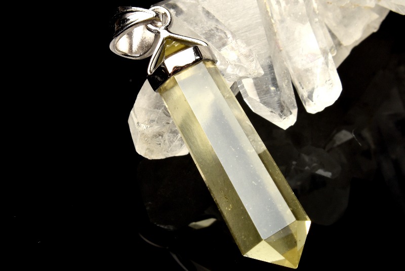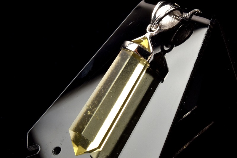 【1点物】Silver925◇AAA宇宙の神秘 リビアングラス 36x10mm 六角柱両剣ポイント ペンダントトップ _PC595