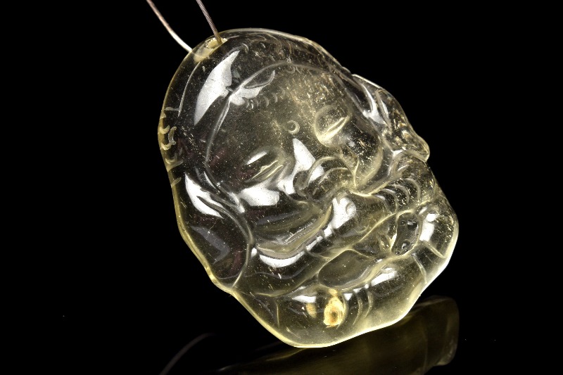 【1点物】AA☆繊細彫刻 リビアングラス 28x22mm ガネーシャ彫刻(トップ穴) ルース _PC676