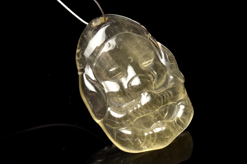 【1点物】AA☆繊細彫刻 リビアングラス 29x21mm ガネーシャ彫刻(トップ穴) ルース _PC677