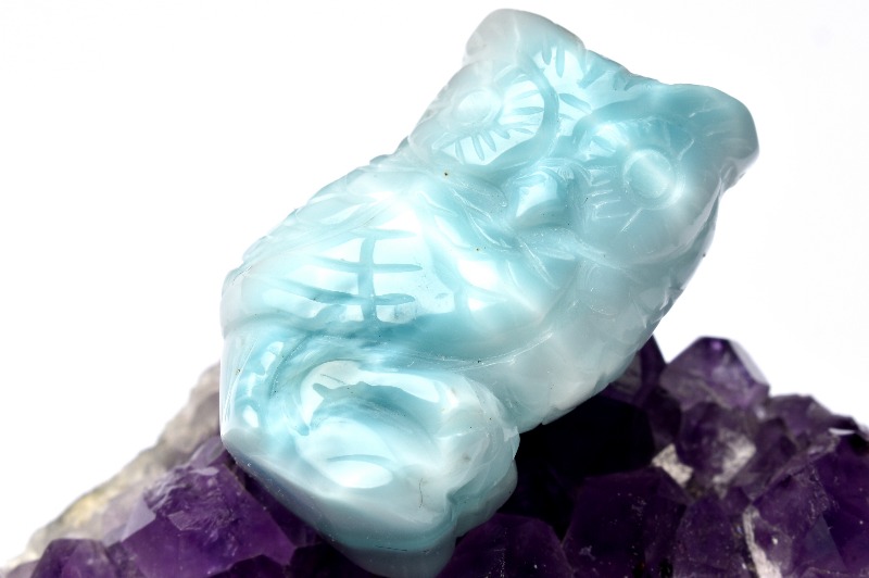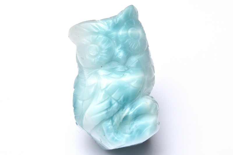 【1点物】繊細彫刻 ラリマー 29x18mm フクロウ彫刻 置物 _PC686