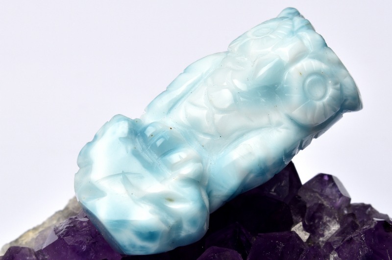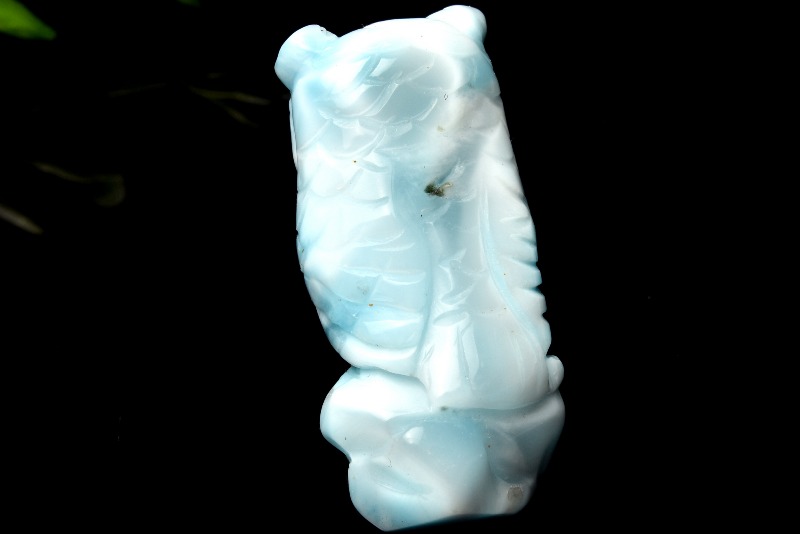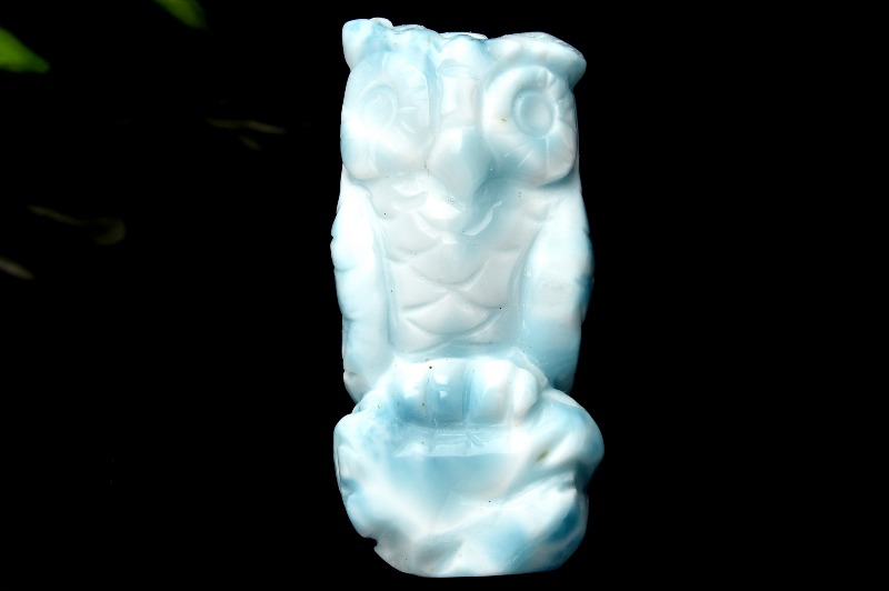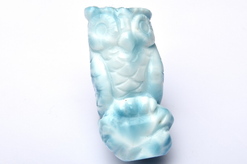 【1点物】繊細彫刻 ラリマー 34x16mm フクロウ彫刻 置物 _PC687