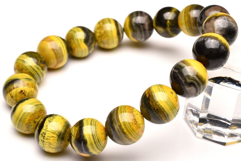 【1点物】美しい縞模様 バンブルビージャスパー(マルハナバチジャスパー) 12mm ブレスレット _U4668
