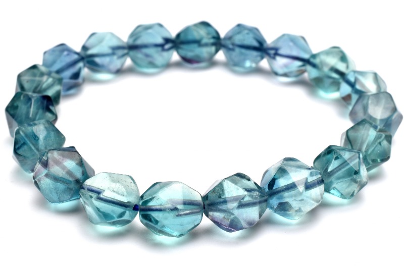 【1点物】人気 ブルーグリーンフローライト 10mm シンプルスターカット ブレスレット _M5947