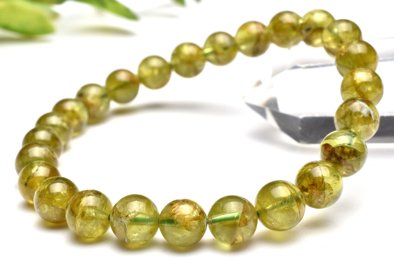 【1点物】数量限定◇希少大珠 ペリドット(橄欖石) 7mm ブレスレット _M6126