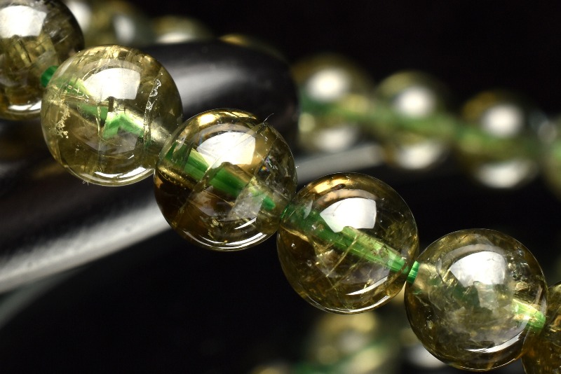角度を変えると特有の多色性が見られ、グリーン〜イエローがかったグリーンへと変わる様はとても美しいです。