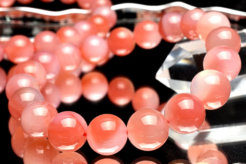 材質ピンクアゲート(桃色瑪瑙) 10.5mm 産地:中国・四川省