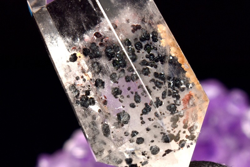 水晶にレピドクロサイト(鱗鉄鉱)が内包された天然石です。