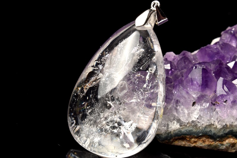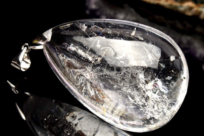 【1点物】Silver925◇希少水入り! エレスチャルクォーツ 38x25mm ドロップ ペンダントトップ _PC1000