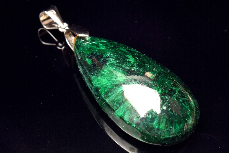 【1点物】Silver925◇高発色 ベルベットマラカイト 33x17mm ドロップ ペンダントトップ _PC1030
