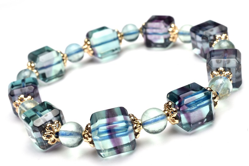 【1点物】レイヤー パープルブルーフローライト 9-10x9-10(丸玉6.5)mm キューブ ブレスレット _M6418