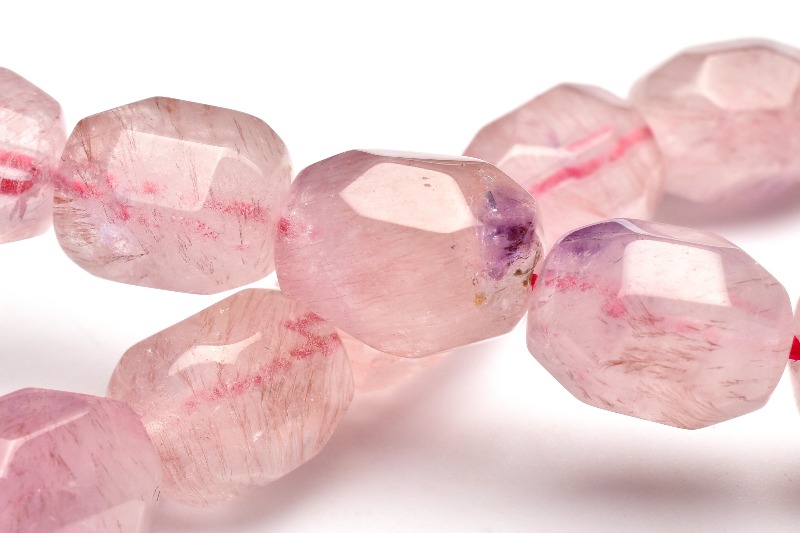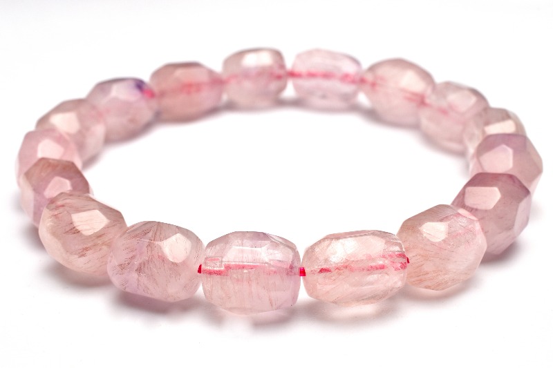 【1点物】華やか◇希少形状 ピンクスーパーセブンアメジスト 11-13x9-10mm 原石ラフカット ブレスレット _M6552