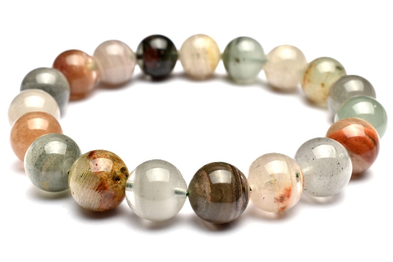 【1点物】マルチカラー◇千層レイヤー ガーデンクォーツ 10.5mm ブレスレット _M6557