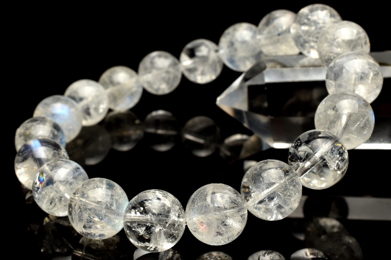 【1点物】透明◇マダガスカル産 レインボームーンストーン 9.5-10.5mm ブレスレット _M6632